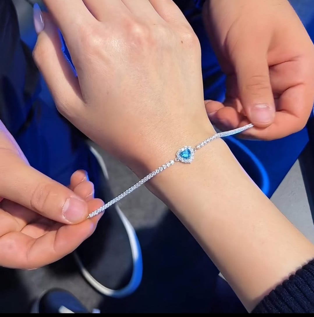 Elegant Ocean Blue Zirconic Heart Crystal Bracelet